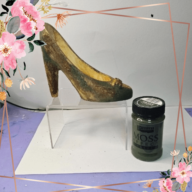 Saját öntésű cipellő amit kerámiaporból készítettem, majd kézzel festettem, antikolással, rozsda- és mohaeffekt technikával tettem különlegessé.