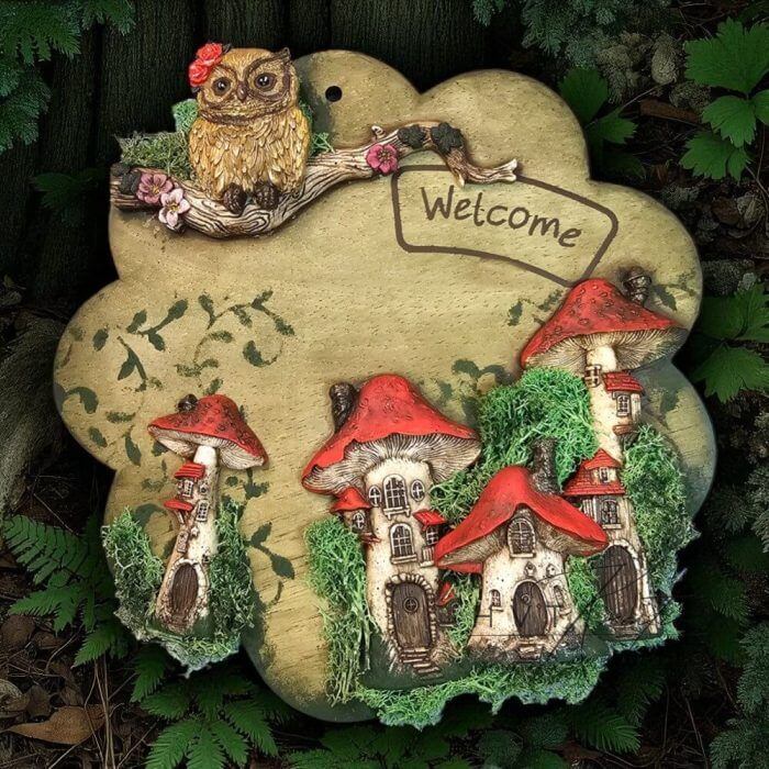 Egy különleges faalapra dolgoztunk, amit antikoltunk, majd gombákat és baglyot festettünk, valamint stencilezéssel adtunk egyedi textúrát a háttérnek. 🍄🦉